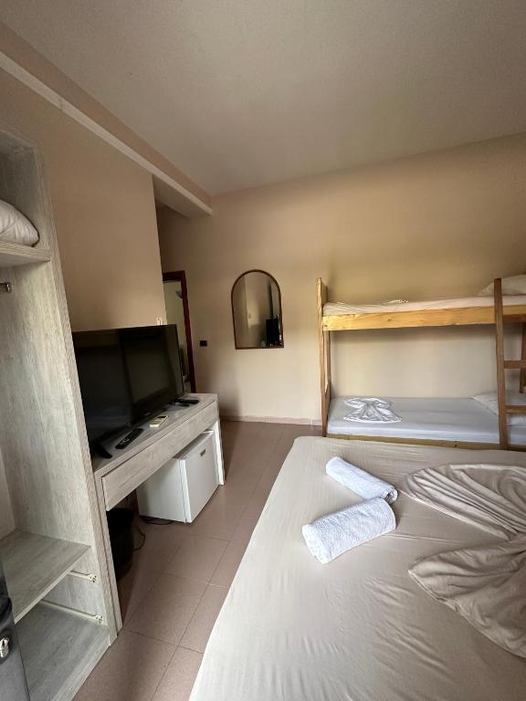 Seashell Beach Rooms in Durrës offers family rooms with balconies, sea or garden views, air-conditioning, and private bathrooms. Each room includes a work desk, dining area, and modern amenities to ensure a comfortable stay.